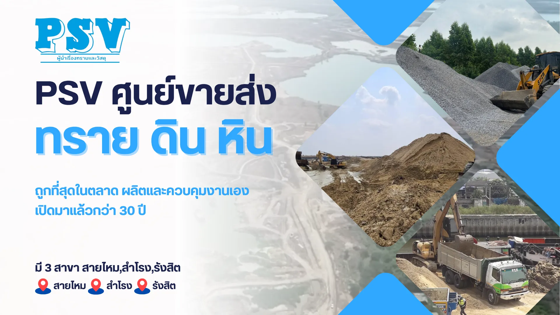 เป็นผู้ประกอบการค้าวัสดุก่อสร้าง ประเภท ทราย ดิน หิน ลูกรัง ที่มีคุณภาพดีที่สุด ตามความต้องการของท้องตลาด เนื่องจาก บริษัท ผลิตวัสดุเองจากบ่อดินบ่อทรายบนเนื้อที่ 4000 ไร่ ขนส่งเองโดยเรือเหล็กของบริษัทที่มากรุงเทพ และขายเองโดยบริษัทในเครือจึงสามารถทำราคาได้ถูกที่สุดในท้องตลาดการันตีได้จาก บริษัท อิตาเลี่ยนไทยฯ บริษัท ช.การช่างฯ บริษัท ชิโนไทยฯ บริษัท ยูนิค เอ็นจิเนียริ่งฯ เป็นต้น ที่ไว้วางใจ และใช้วัสดุและเป็นลูกค้าของเรามานานกว่า 30 ปี
